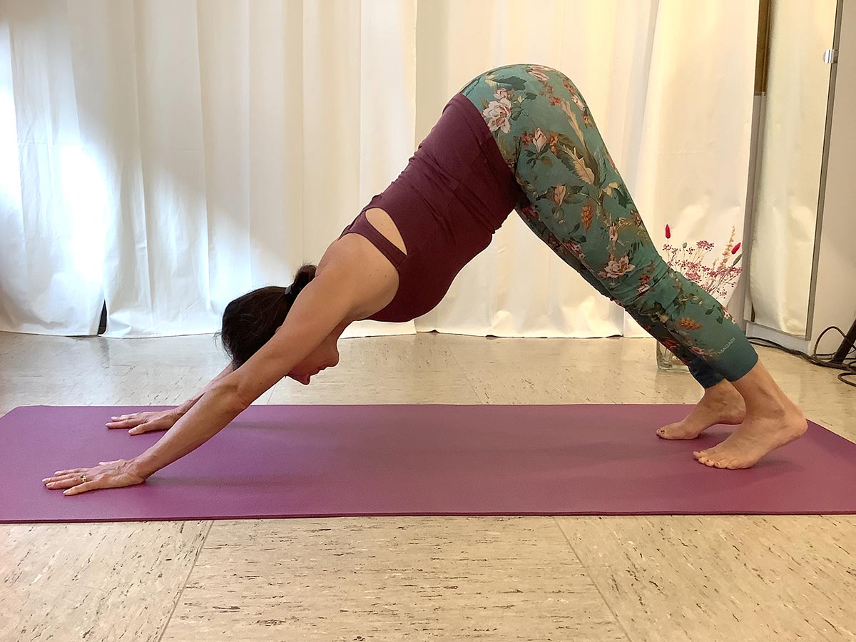 Foto Nannette Hanke im Yogakurs (herabschauender Hund)